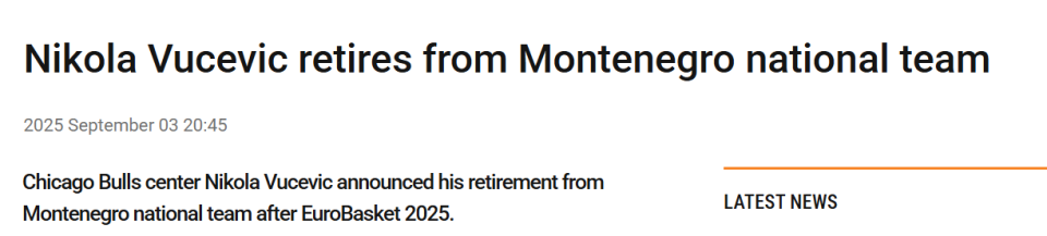再见!34岁武切维奇宣布从黑山国家队退役 谢幕战31+11+7不敌英国